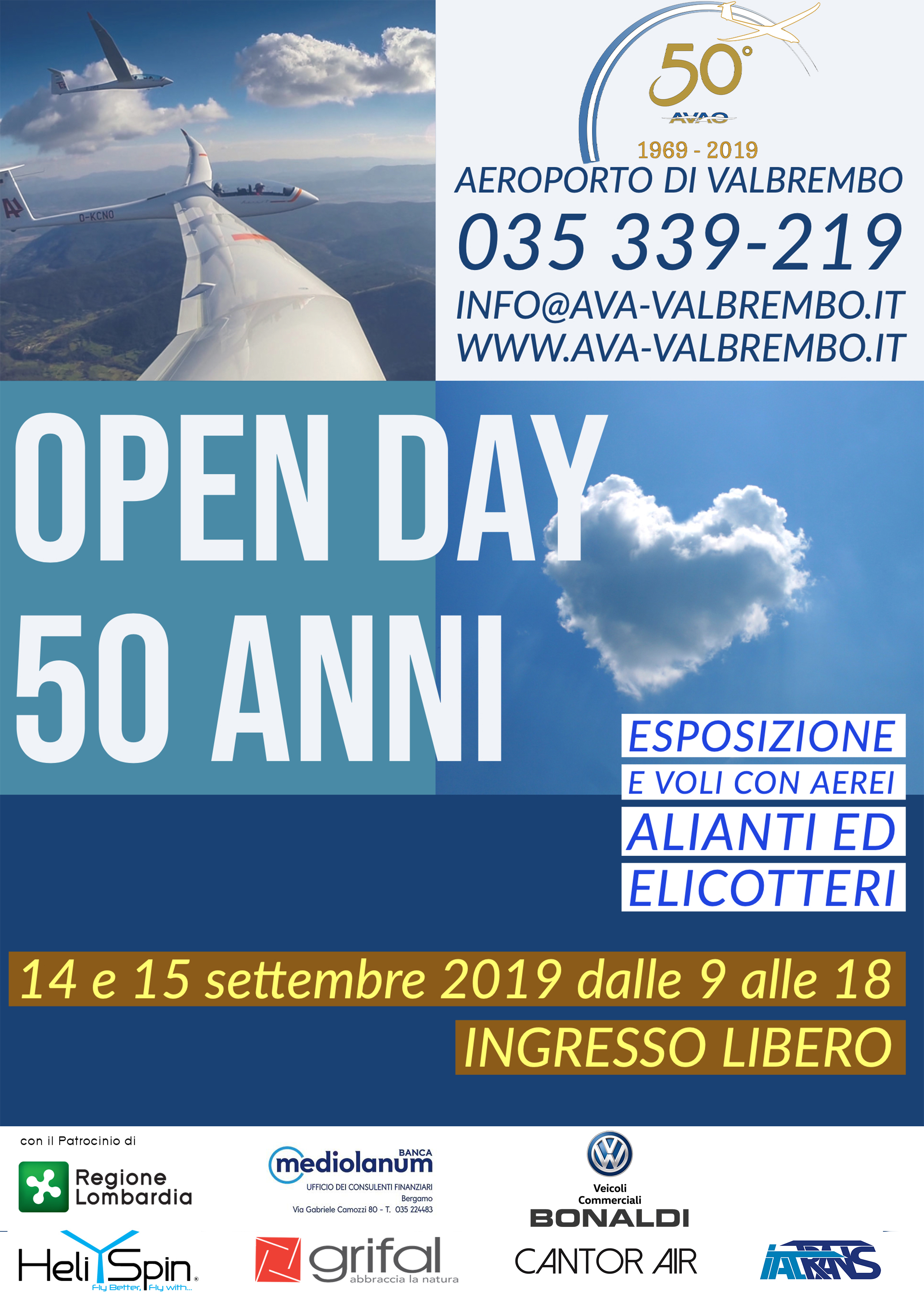 | 13 14 Settembre | Sabato Domenica | Valbrembo ( BG ) | OPEN DAY 50° Anniversario | A.V.A.O. | Partecipiamo alla festa del 50° anniversario AVAO | LOCANDINA |